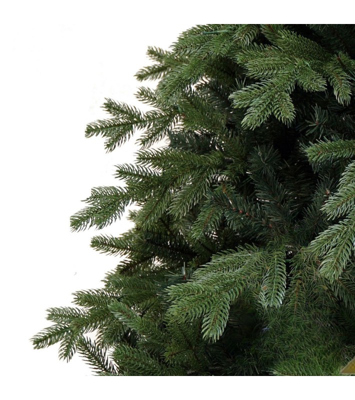 The artificial Christmas tree Alpina is a natural looking artificial Fir tree with multiple shades of green ( Fir needles) .You can assemble this artificial Christmas tree very fast by the hinged construction. In this construction the branches are pre-assembled in brackets with a hinge attached to it. The branches fall into the right place as soon as you put the tree up. All you have to do is fold out the small branches so that it becomes a fully shaped artificial Christmas tree.The basis of the Christmas tree is a metal stand. A part of the branches and needles is made in molds with a PE material so that it will give the precise shape from nature. The branches contain various of colors of green/light green to give a natural look! The other part of the branches and needles is made of PVC so they are firmly attached to the branches. This way a branch is created with flat and sturdy needles. This combination of materials provides a solid whole so you can decorate your tree safely with many Christmas decorations.The artificial Christmas tree will be delivered in a storage box in which you can easily store the tree again for the following year after the holidays .