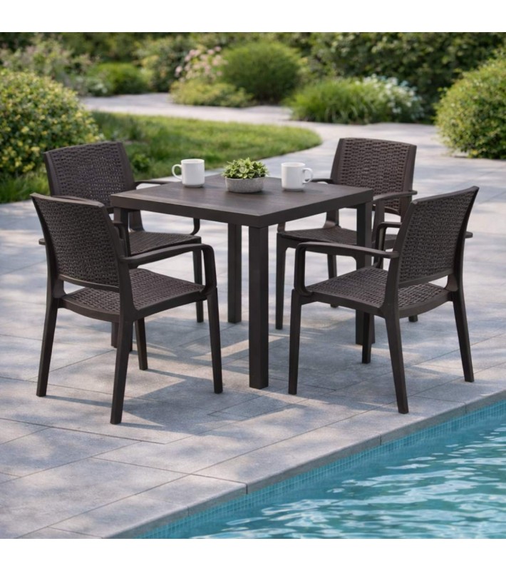 The Outdoor Armchair Ibiza Brown is made from polypropylene, a highly durable material designed for outdoor use and everyday performance. Measuring L58 x W59 x H87 cm, it provides a comfortable and spacious seat with an ergonomic backrest for proper support. Polypropylene is resistant to moisture and UV exposure, helping maintain its color and structural stability over time. The brown finish creates a warm and natural aesthetic, ideal for gardens, terraces, patios, and professional dining environments. Ibiza Brown is a reliable and practical choice for both residential and commercial use, combining functionality, durability, and contemporary outdoor design.