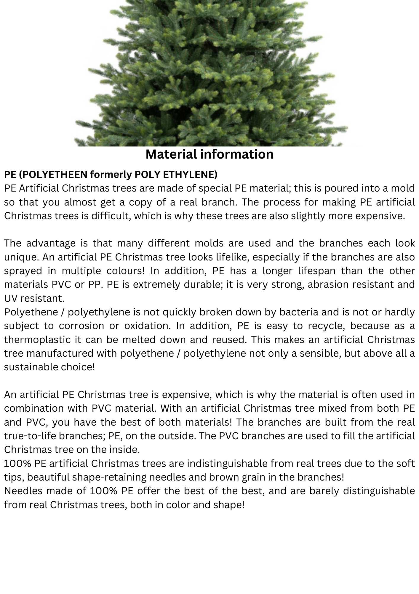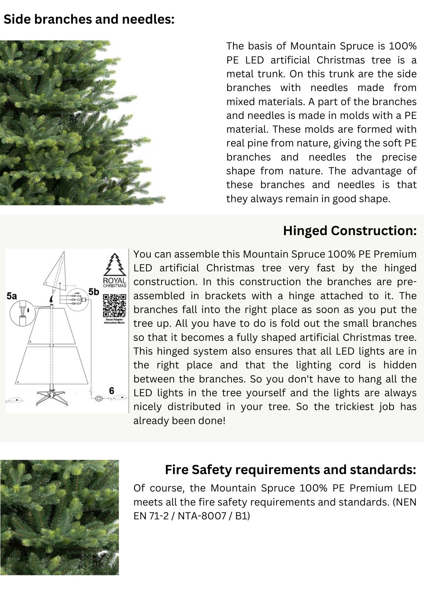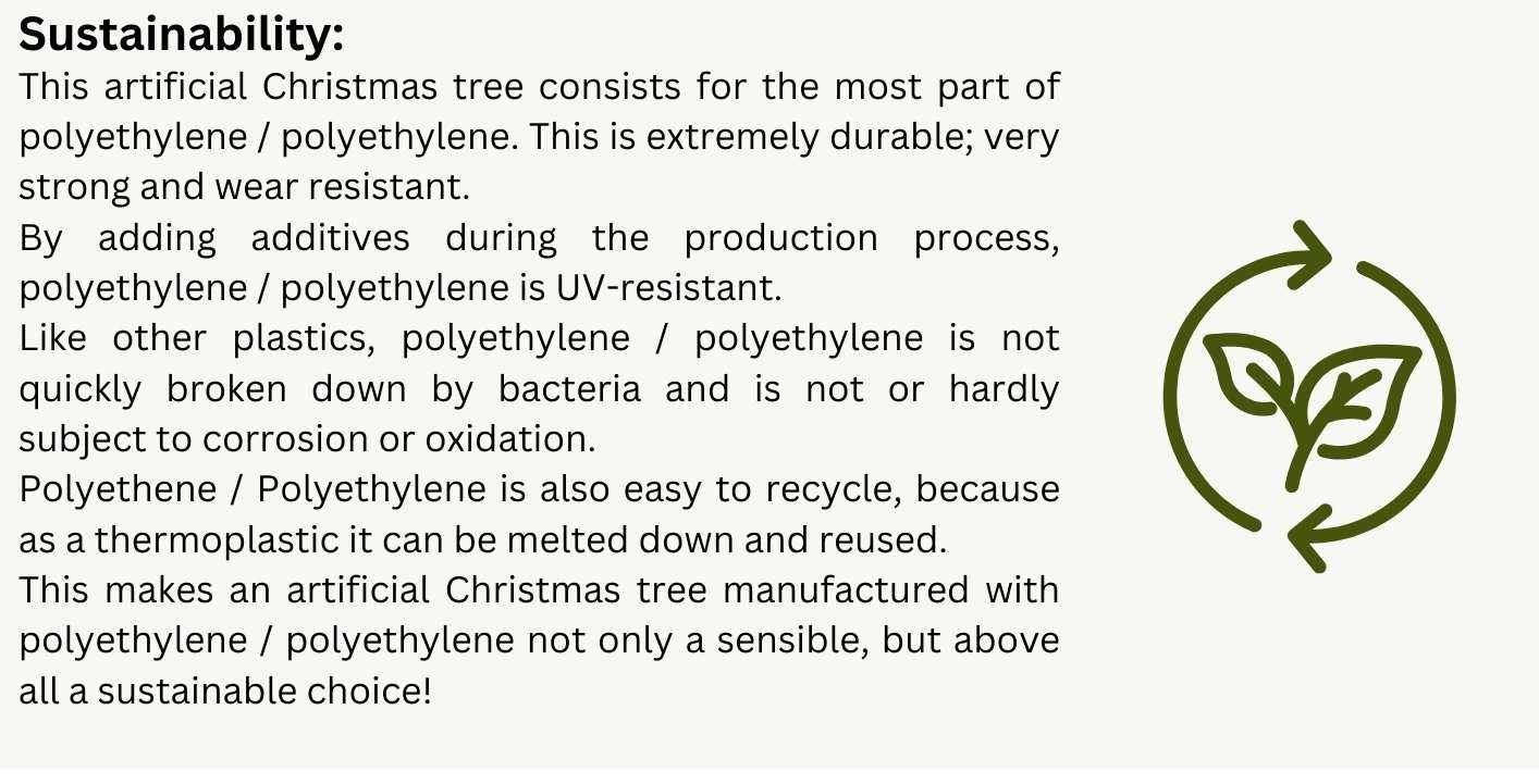 The artificial Christmas tree Royal Vermont Spruce PE / PVC Premium Warm LED is a natural looking wide model artificial Christmas tree. This is due to the mix of high-quality PE & PVC material. This artificial Christmas tree has a whimsical and irregular structure, just like the real pine trees from nature have.