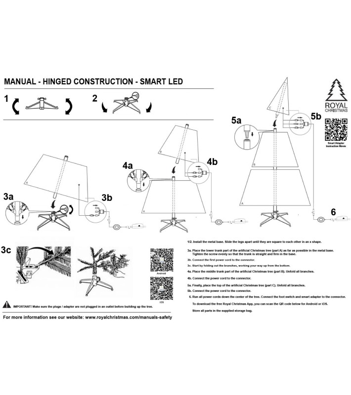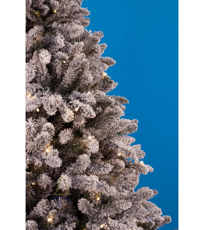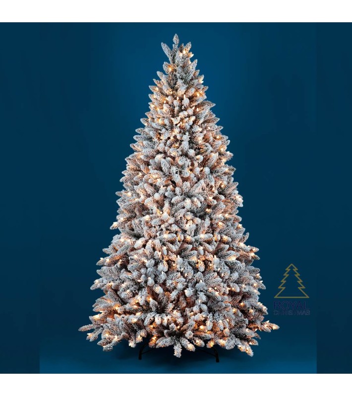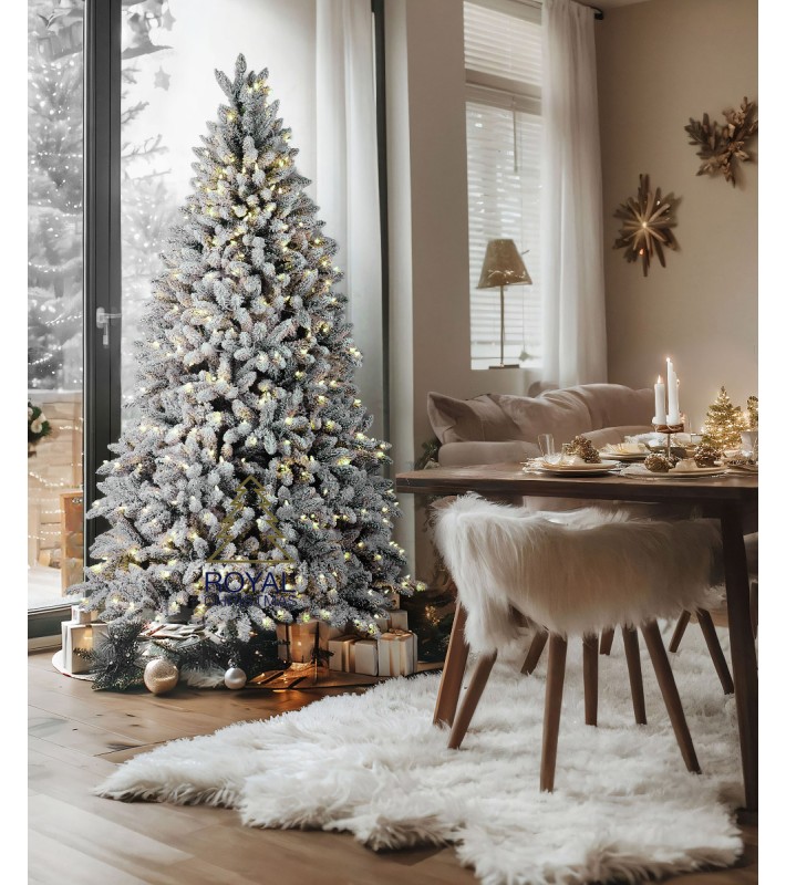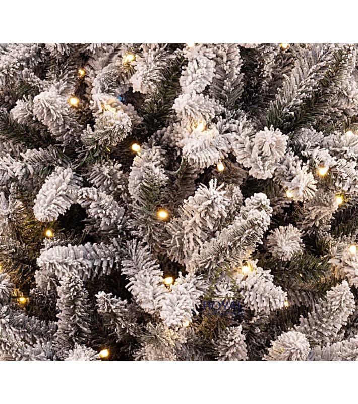 The Flock Tree Deluxe LED is a beautifully full, snowy artificial Christmas tree that brings the magic of a white Christmas indoors. Equipped with Smart Warm LED lighting, controlled via a convenient foot switch, this tree also includes the Royal Christmas Smart Adapter, which can be managed through the free Royal Christmas App for Android and iOS. Made from high-quality PVC, the sturdy branches are perfect for hanging a variety of decorations, with the LED lights thoughtfully distributed and hidden among the branches for a seamless look. Featuring a realistic snowy appearance, fire-resistant treatment, and a wide model design, the Flock Tree Deluxe is easy to set up with its hinged construction and comes with a durable steel base, making it a perfect addition to your holiday décor.