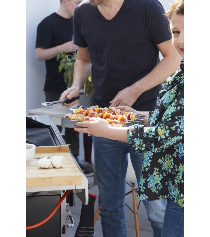 delicious brochettes on the grill! you get a varied taste bomb if you stay true to your instincts. but how can you get them ready as quickly as you can? with a bbq kebab rack of course! multiple skewers are clamped together by a bbq kebab rack, making control even easier. you can create the finest brochettes ever in this technique!