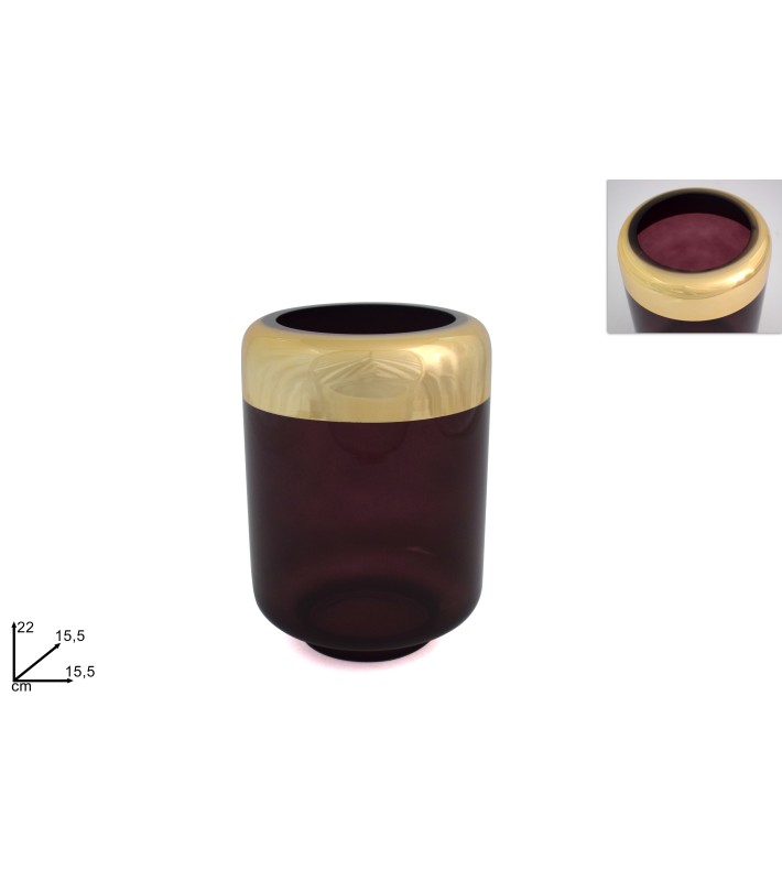 Βάζο Γυάλινο - Μπορντό/Χρυσό 22εκ