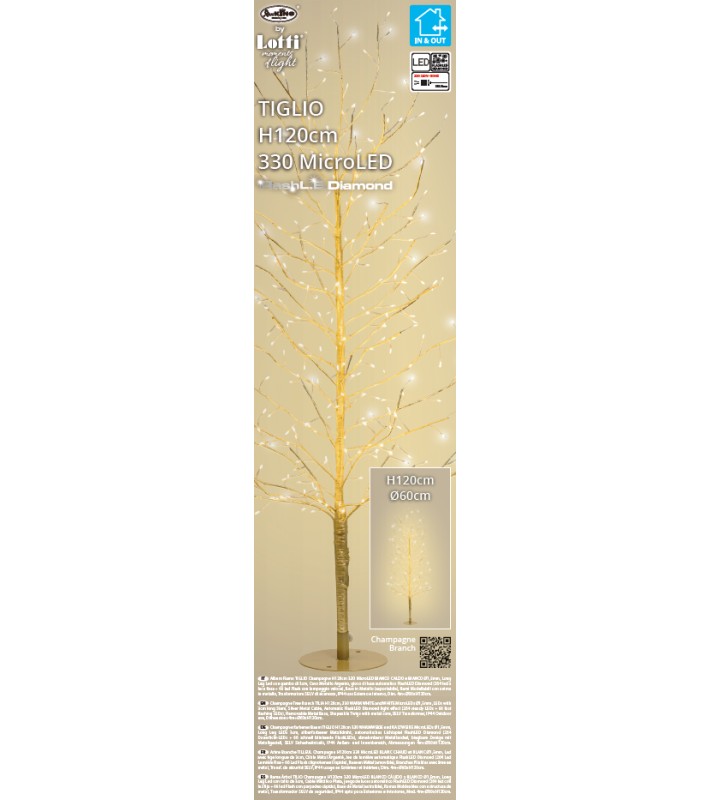 Φωτιζομενο δεντρο κλαδιων - Tiglio - Θερμο Λευκο/Λευκο LED φωτακια/Σαμπανιζε