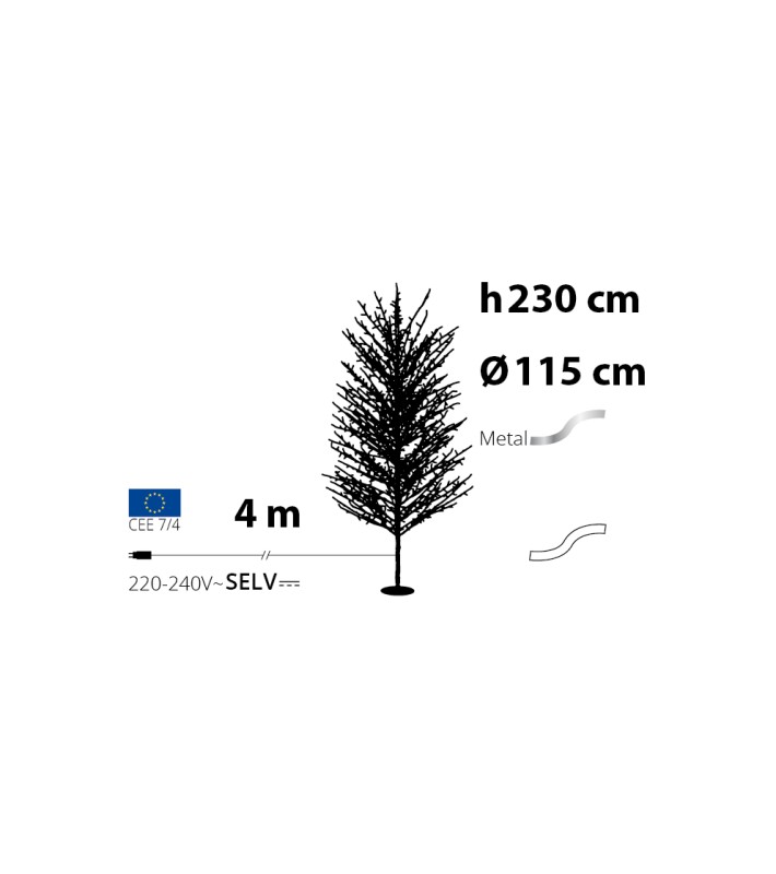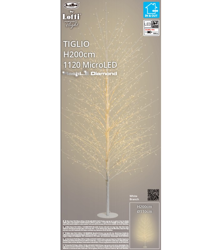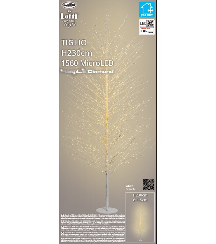 Αναβαθμίστε τη χριστουγεννιάτικη διακόσμηση με το εντυπωσιακό φωτιζόμενο δέντρο Tilia σε λευκό, ύψους 230cm, το οποίο διαθέτει 1560 θερμά λευκά MicroLEDs. Τα φωτάκια είναι τοποθετημένα σε βραχίονες 3cm και συνδέονται με ασημί μεταλλικό καλώδιο, προσφέροντας κομψή εμφάνιση και εφέ διαμαντιού με 1404 σταθερά και 156 αναβοσβήνοντα LED για ένα μαγευτικό, φωτεινό αποτέλεσμα. Τα διαμορφώσιμα κλαδιά με μεταλλικό πυρήνα προσφέρουν ευελιξία στη διακόσμηση, ενώ η μεταλλική αφαιρούμενη βάση εξασφαλίζει σταθερότητα. Το λευκό καλώδιο ρεύματος μήκους 4 μέτρων και ο ασφαλής μετασχηματιστής SELV εξασφαλίζουν εύκολη και ασφαλή χρήση. Με δείκτη στεγανότητας IP44, είναι κατάλληλο τόσο για εξωτερικούς όσο και για εσωτερικούς χώρους, όπως εισόδους, βεράντες ή επαγγελματικές διακοσμήσεις. Συσκευάζεται σε λευκό κουτί με έγχρωμη ετικέτα και αποτελεί εντυπωσιακό στοιχείο για κάθε γιορτινή περίσταση.