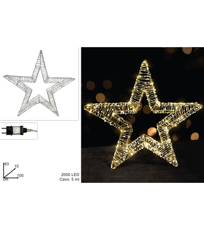 Δώστε λάμψη και χρώμα στις γιορτές σας με το εντυπωσιακό χριστουγεννιάτικο φωτιζόμενο αστέρι 3D, διαστάσεων 100xY93εκ., που διαθέτει 2000 LED φώτα θερμού λευκού χρώματος! Αυτό το LED αστέρι δημιουργεί μαγευτικό και ζωντανό φωτισμό, προσφέροντας λαμπερή και ζεστή γιορτινή ατμόσφαιρα σε κάθε χώρο, ιδανικό για εσωτερική και εξωτερική χρήση. Με καλώδιο μήκους 5 μέτρων, τοποθετείται εύκολα όπου επιθυμείτε, εξασφαλίζοντας άνεση και ασφάλεια στη χρήση. Λειτουργεί με τροφοδοσία ρεύματος, παρέχοντας σταθερό και δυνατό φωτισμό που θα φωτίσει τις γιορτές σας μοναδικά.