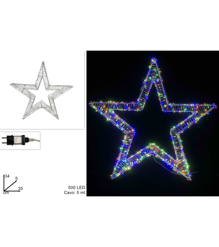Δώστε λάμψη και χρώμα στις γιορτές σας με το εντυπωσιακό χριστουγεννιάτικο φωτιζόμενο αστέρι 3D, διαστάσεων 35xΥ34εκ., που διαθέτει 500 πολύχρωμα LED φώτα! Αυτό το LED αστέρι δημιουργεί μαγευτικό και ζωντανό φωτισμό, προσφέροντας λαμπερή και ζεστή γιορτινή ατμόσφαιρα σε κάθε χώρο, ιδανικό για εσωτερική και εξωτερική χρήση. Με καλώδιο μήκους 5 μέτρων, τοποθετείται εύκολα όπου επιθυμείτε, εξασφαλίζοντας άνεση και ασφάλεια στη χρήση. Λειτουργεί με τροφοδοσία ρεύματος, παρέχοντας σταθερό και δυνατό φωτισμό που θα φωτίσει τις γιορτές σας μοναδικά.