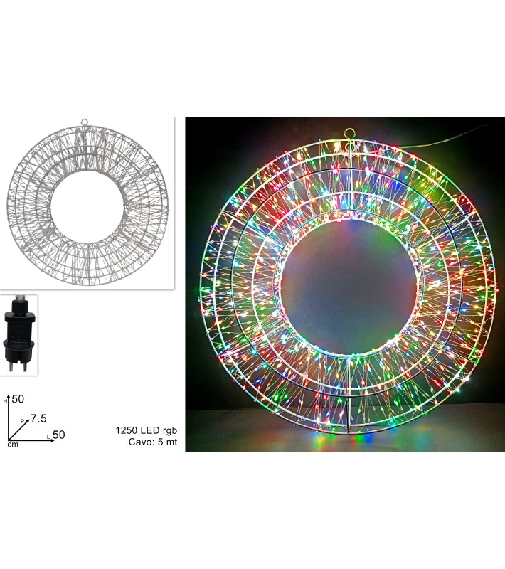 Φωτιζόμενο Στεφάνι 3D - Πολύχρωμο - Δ50εκ. - 1250LED (RGB)