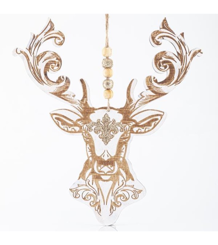 Στολίδι Τάρανδος - Ξύλινο Λευκό/Χρυσό 24X18X0,5CM