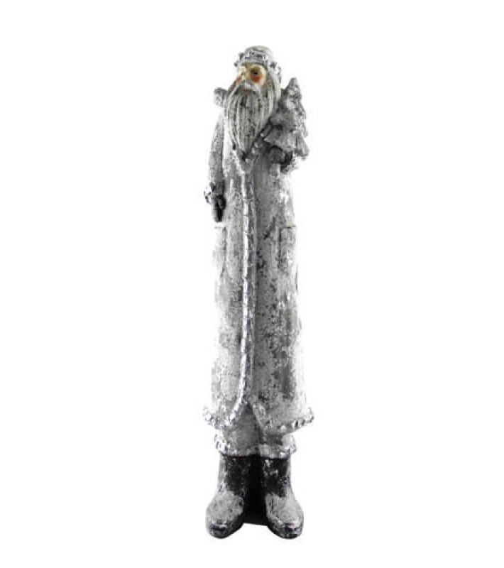 The decorative Santa Athos in silver color stands at a height of 80 centimeters. This glamorous decorative Santa will add a festive atmosphere and sparkle to your space. With intricate details and a shiny finish, this decorative Santa is perfect for the holiday season and Christmas decoration.