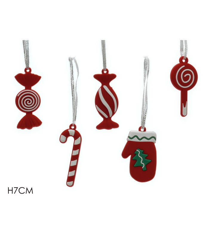 These candy ornaments are 7cm tall and are available in five different designs. They are perfect for decorating your Christmas tree or adding a sweet touch to your holiday decor. Their vibrant colors and various designs will add joy and color to your festive space.