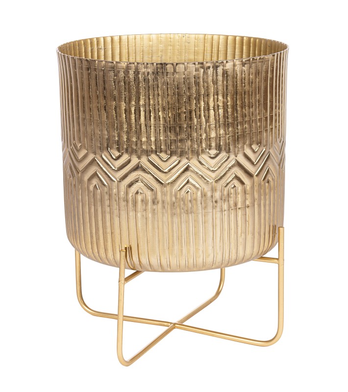 The Chennai planter in golden color stands at a height of 42 centimeters. This planter offers a stylish and elegant option for displaying your favorite plants and adding a touch of luxury to your decor. Its golden finish adds a sense of opulence and sophistication to your space, making it an eye-catching addition to your interior design.