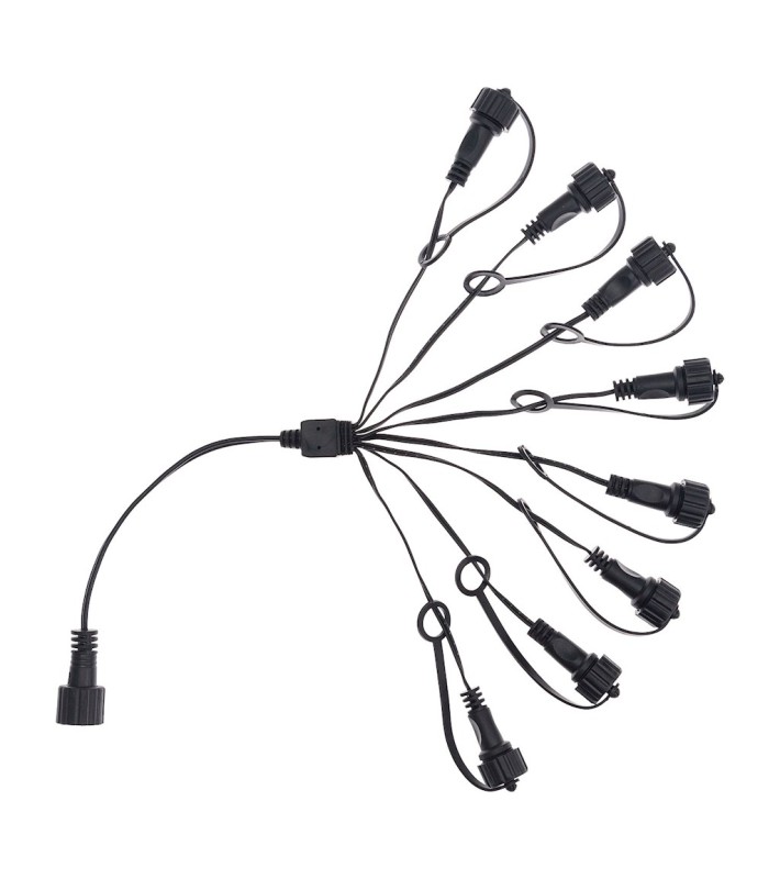 Accessory for 2-pin Smart System (SMART Connect compatible), 8-way Soft Connector, 1 IN Male connector and 8 OUT GS 2-pin Female connectors, IP44 Outdoor use, Black Cable, Dimensions 15+8x15cm, Polybag with EcoPack header card and hang hole