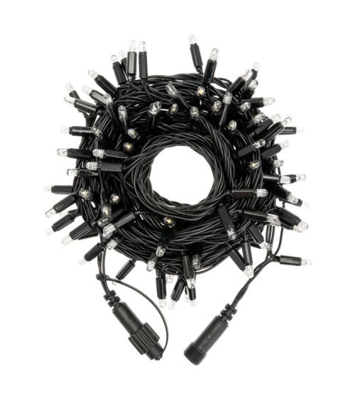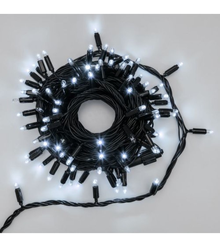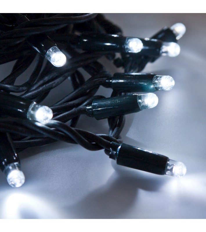 String light, MXL, LED 24V 3-pin Professional Series, 96 WHITE MaxiLEDs ø7mm, Connectable (Max 5 pcs / 480 LEDs / 50m), Steady light or optional Steady + 7 Selectable light effects Controller with Memory, 24V (Transformer NOT included), Outdoor use, Black Cable, Dimensions 10m, Deluxe EcoPack Box