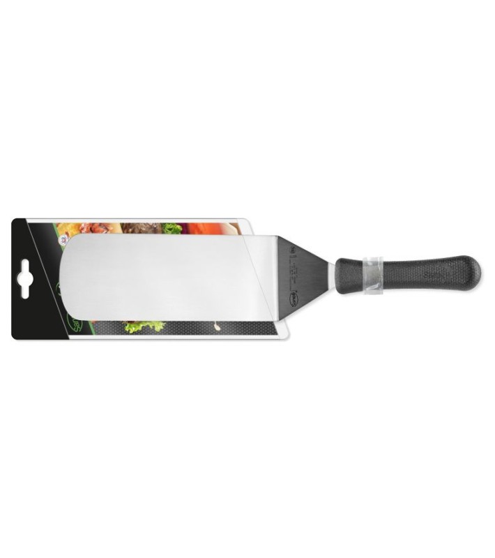 Flexible, large-area spatula ideal for griddle and grill cooking. Ergonomic handle with non-slip texture.