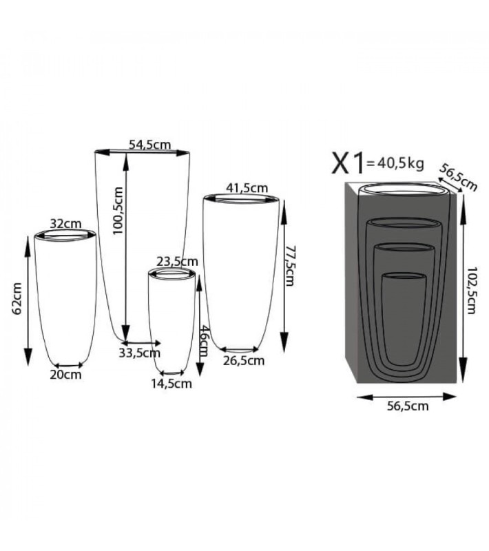 54,5x54,5x100,5/42x42x78/32,5x32,5x62/23,5x23,5x46CM