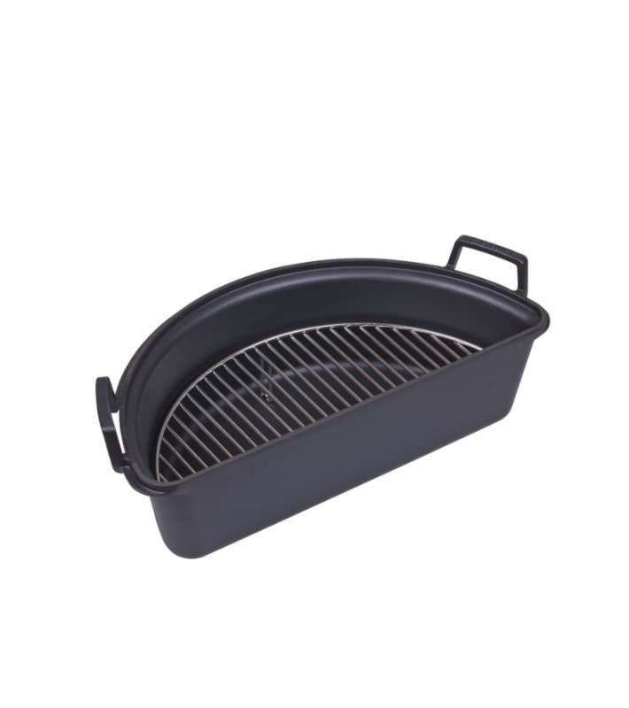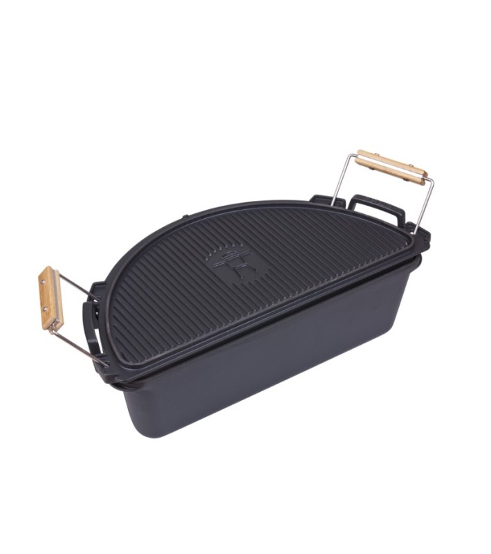 The SGS fire pot set from MONOLITH for the Smart Grid System of the MONOLITH Classic is just the thing for a wide range of preparation options when barbecuing. With this solid cast iron pot in a half-moon shape, you get an accessory that has remarkable heat retention properties. From delicious stews to juicy roasts and crispy sandwiches, you can cook everything with ease. The SGS Fire Pot is designed for use in the MONOLITH Classic and is made of 4 mm thick, black enameled cast iron. The lid is more than just a lid: it is reversible and can be used as a grill plate with either a smooth or ribbed surface. Also included is an internal stainless steel grid, which creates an additional level in the pot. With these elements, your ceramic grill becomes the ultimate outdoor kitchen in no time at all.