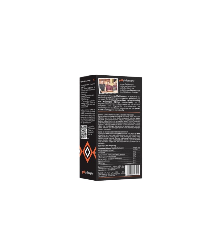Seasoning blend for patties, cooked on BBQ or oven. 120g/4.2oz (for 1kg/2.2lbs of meat). 100% natural ingredients.Ingredients: Wheat breadcrumbs (wheat flour, water, salt, yeast), Salt, Whey, Wheat fiber, corn starch, Soy protein, Dextrose, Beef broth (Salt, dextrose, whey, beef extract, acidity regulator: citrate, natural yeast, spices), acidity regulator: citrate, emulsifier: gum guar, baking soda (sodium bicarbonate), spices. Contains celery and mustard seed.