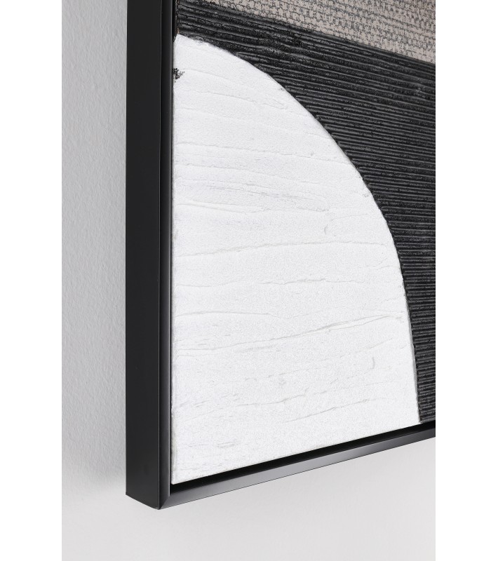 The Trim fabric painting, framed in black and white, measures 82.6 x 122.6 cm and serves as a stunning focal point for any room. Its bold monochrome palette and fabric texture combine to create a modern, eye-catching piece that enhances the sophistication of your space. The sleek frame complements the artwork, making it an ideal addition to contemporary, minimalist, or even industrial-style interiors.