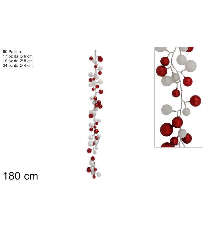 Decorative Garland - 60 Balls - White/Red - 180cm