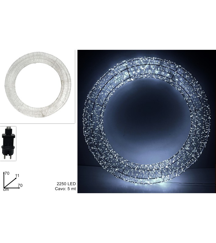 Add sparkle and color to your holidays with the impressive 3D Christmas illuminated wreath, 70 cm in diameter, featuring 2250 cold white LED lights! This LED wreath creates a magical and vibrant lighting effect, offering a bright and warm festive atmosphere in any space. Perfect for both indoor and outdoor use.