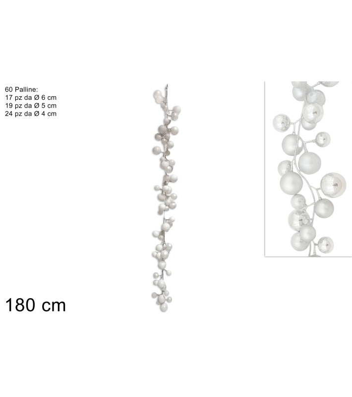 Enhance your Christmas décor with the Frostina garland, beautifully adorned with elegant white baubles and measuring 180 cm in length.