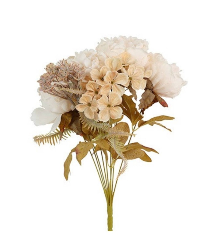 Artificial bouquet Pia in white with dimensions of 15x15x46cm. Offers a ready decorative solution with a natural look.
