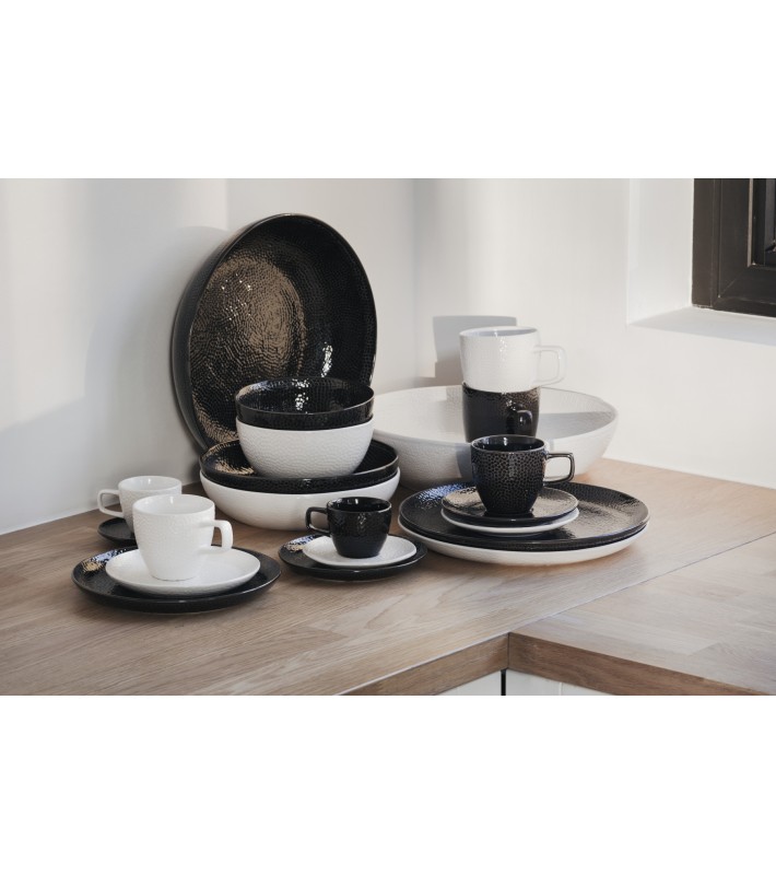 Mielo stands out from other collections thanks to the lovely structural design that underpins it. A distinctive table experience is provided by the shiny exterior and hammered design on both the inside and outside. You can freely mix and match the plates, bowls, and cups from the two colors. The forms are quite useful and complete the image. Additionally, the goods are stain- and scratch-resistant.