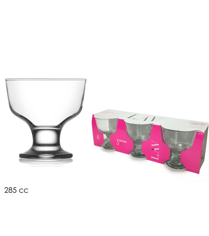 The set of ice cream glasses with clear glass and a capacity of 285cc each includes three glasses, perfect for serving your favorite ice creams. The clear glass of these glasses allows you to enjoy the sensual appearance of the ice cream as you indulge in it. With these glasses, you can create a delightful experience for your taste buds.