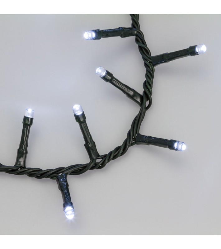 Add a crisp, bright touch to your decor with our String LED Lights, featuring cold white LEDs and a green cable that blends effortlessly with natural elements. These string lights emit a cool, radiant glow that enhances the ambiance of any setting, making them perfect for festive occasions or everyday decoration. The cold white illumination provides a clear, bright light that adds a touch of elegance, while the green cable discreetly integrates with trees, wreaths, or garlands, enhancing your display without drawing attention away from it. Crafted for durability and ease of installation, these lights are designed to offer long-lasting performance and a striking visual impact, making them a versatile choice for decorating gardens, patios, or living spaces.