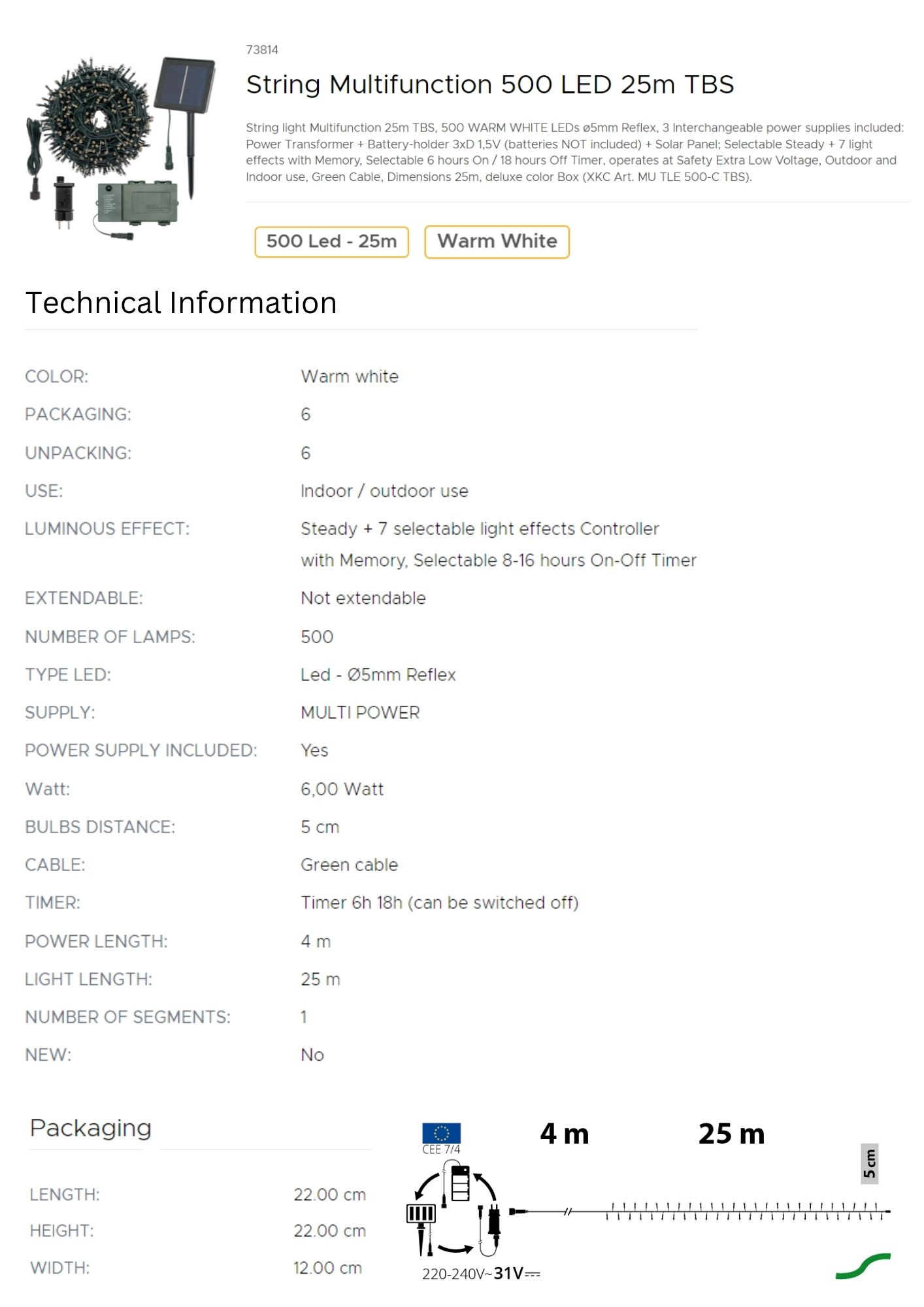 Illuminate your space with the charming glow of our String LED Lights, featuring warm white LEDs and a green cable that blends seamlessly with natural surroundings. These string lights create a cozy, inviting atmosphere perfect for any occasion, from festive celebrations to everyday ambiance. The warm white illumination casts a gentle, soothing light that enhances the beauty of your decor, while the green cable discreetly integrates with trees, wreaths, or garlands, adding a touch of elegance without distracting from your display. Crafted to withstand various weather conditions and provide long-lasting performance, these lights are easy to install and versatile, making them ideal for decorating your garden, patio, or living room, and transforming your space with a magical, soft glow.