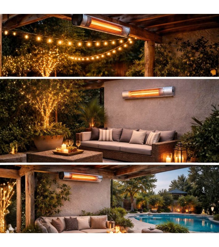 Wall Heater with Golden Tube and Remote Control - Silver 2000W IP65