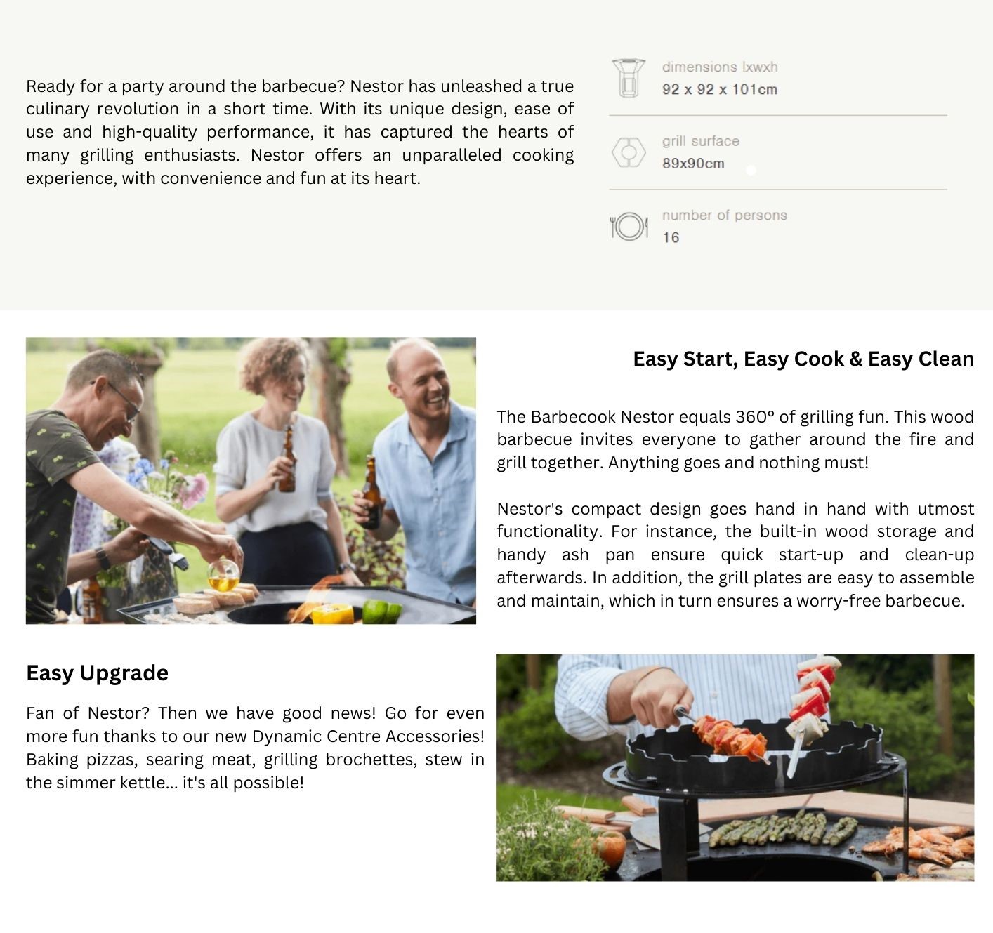 Nestor, a 360° wood barbecue that brings friends & family together around the fire all year round. With this versatile appliance, you don’t only conjure up the most diverse dishes, it’s also a true eye-catcher in your garden. Nestor is available in black galvanised steel & Corten steel. It includes 2 removable cooking plates made of 6 mm carbon steel. Thanks to the raised rim, there are no grease drops on the terrace and ingredients cannot fall off the cooking plate. There is an integrated ash container and further, you may storage wood and/or tools to the bottom of your barbeque.